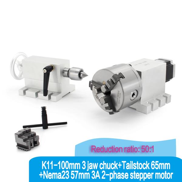 50:1 100:1 CNC 4th Axis Rotary Axis Gapless Harmonic Reducer Gearbox K11-100mm Dividing Head & 65mm Tailstock